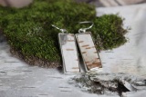 Eco-friendly genuine white birch bark earrings, topped with clear resin and set inAntiqued silver, copper or 24k gold plate over pewter.