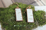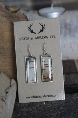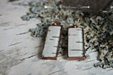 Rectangle Tab Earrings are inlaid with white birch bark from Northern Ontario. These drop earrings are perfect for every day. No two are alike. Made to order.