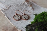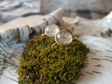 Small round eco-friendly, genuine white birch bark earrings, in antiqued silver, copper or 24k gold plated, topped with clear resin. The ear wires are nickel free surgical steel. All of the bark used in our jewellery is ethically sourced and not harvested from live trees. The white birch we used comes from Northern Ontario Canada, and carries within it, the energy of our Great Canadian Wilderness.