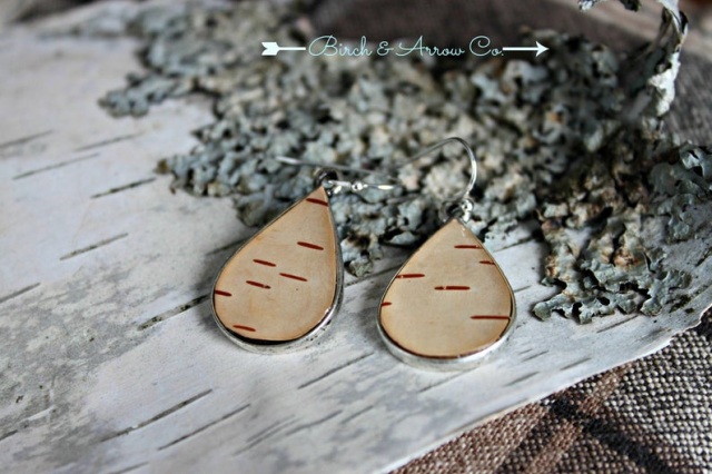 Tear Drop Birch Bark Earrings...Eco-friendly genuine white birch bark, .999 antique silver plated or copper, topped with clear resin. The ear wires are nickel free surgical steel. All of the bark used in our jewellery is ethically sourced and not harvested from live trees. The white birch we used comes from Northern Ontario Canada, and carries within it, the energy of our Great Canadian Wilderness.